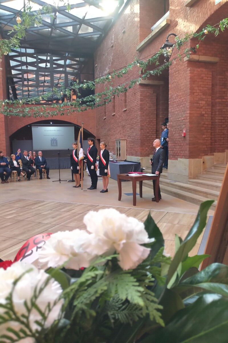 Rotę ślubowania odczytał Grzegorz Zawistowski, uczeń klasy 3A, który w roku szkolnym 2024/2025 uzyskał najwyższą średnią ocen – 5,85. W imieniu swoich klas ślubowanie na sztandar szkoły złożyli:
